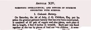 The Ferox Hall battery was described in the journal ‘Annals of Philosophy’.