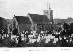 A BRIEF stroll through the town of Tonbridge may not prove uninteresting, so supposing we have just arrived from London we make the station our starting point, taking the High Street to the left hand first. The view down the High Street from the station is not perhaps attractive at the time of writing. Sundry old hits of architecture, remnants of Tonbridge past, combined with various red brick edifices staring you out of countenance, do not present many attractions to those seeking the picturesque, but there is this consolation that the farther the town is explored westward the more attractive it grows, and furthermore building and rumours of building are rife, and a little later it is possible that a handsome technical school and public offices [now Library and Adult Education Centre] will stand upon the site opposite the Angel Hotel, where now mean property and small unattractive cottages mar the entrance to the town.