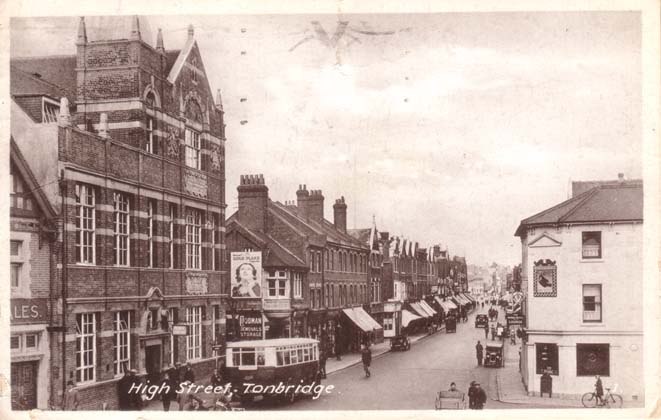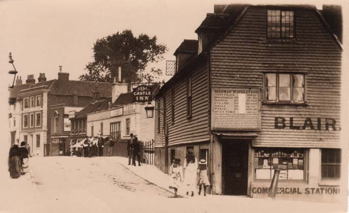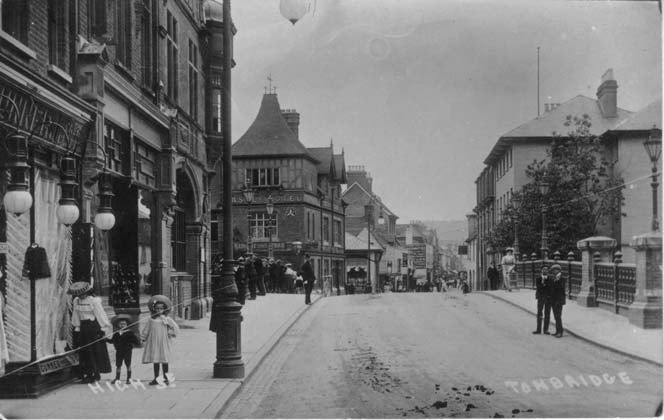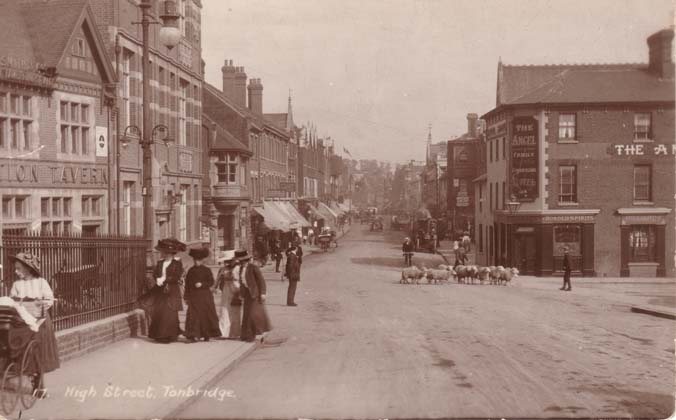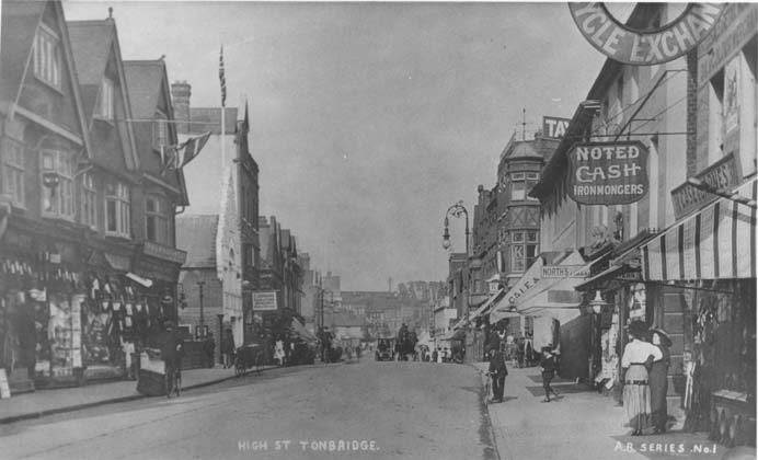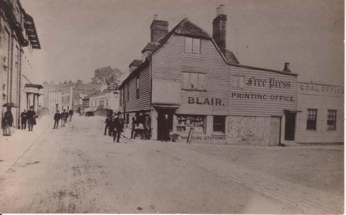 (14A.113) High Street, view north, ?1887, prior to widening of the Big Bridge and demolition of old Castle Hotel and Tonbridge Free Press office (Blair's)