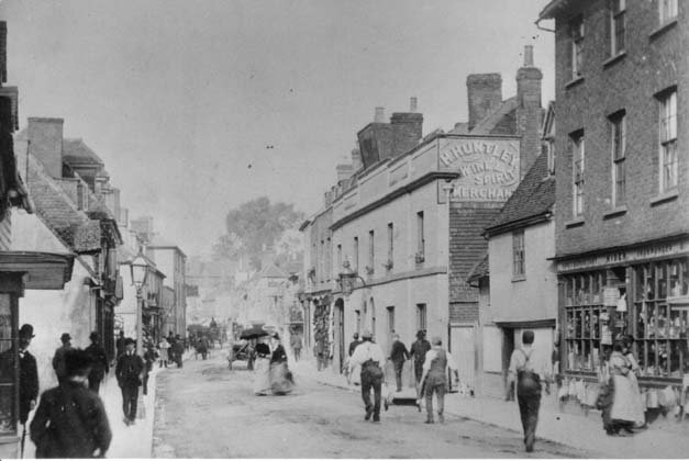(14A.122) High Street, view north with Angel Hotel, before 1900