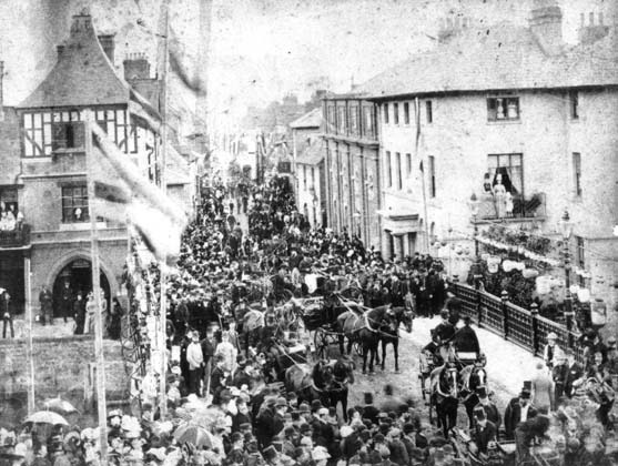 (14A.219) High Street, view south during opening ceremony for the Big Bridge, 1888