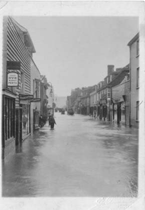 (14A.221) High Street, view south during floods, ?1910. Left foreground shops now Woolworth's