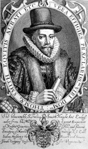 Thomas was one of 13 children and the second surviving son. He attended Merchant Taylors’ School in the City of London and then followed his grandfather into the Skinners’ Company and his father into the Haberdashers’ Company, becoming a freeman of both by 1580. It was at this time in Elizabeth’s reign that attention turned to the colonisation and exploitation of the riches of the New World. Discovery and trade in the far flung corners of the world were becoming patriotic goals, emboldened by the race with Spain and the Netherlands. Thomas was an eager and wealthy participant. It is said that in 1588 he lent £31,000 to Elizabeth to enhance the English fleet which was to go on to defeat the Armada. He became Master of the Haberdashers Company in 1599 and Sheriff of London in 1600. Unfortunately he fell briefly out of favour with Elizabeth at that time because of his friendship with the Earl of Essex who attempted a coup in London, but with the enthronement of King James in 1603 Smythe’s future became more secure, and he was knighted in that year. His full title was Sir Thomas Smythe of North Ash, of Bidborough and of Sutton at Hone Kent, Haberdasher, Sheriff of London, Knight.