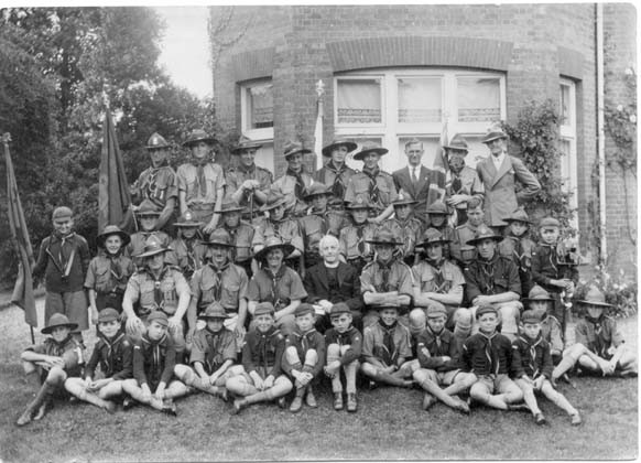 (25.012) Second Tonbridge Parish Church Boy Scouts in the vicarage garden. Group Scout Master Revd Ough with Canon Clark