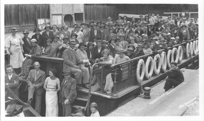 (25.089) River outing from Tonbridge, Mr W Codd (greengrocer on the Railway Arch), 2nd from left, Mr Arthur Chapman (builder), seated, with Sgt-Major's stick