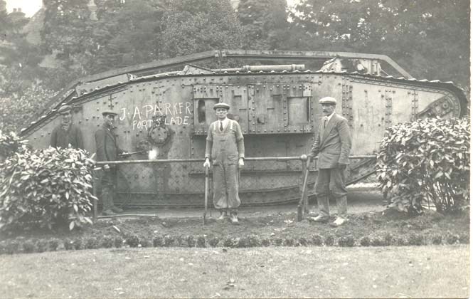 Tonbridge at War 47 Pictures from the THS Pictorial records collection with the catalogue reference. Click < or > to go forward or backword to see each image or click on the image. ©Tonbridge Historical Society, 2023 22.012 Image 8 of 47 (22.012) The tank in the Castle grounds