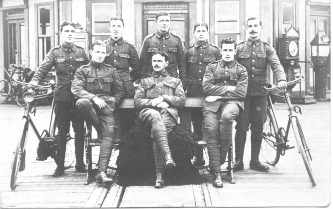 Tonbridge at War 47 Pictures from the THS Pictorial records collection with the catalogue reference. Click < or > to go forward or backword to see each image or click on the image. ©Tonbridge Historical Society, 2023 22.048 Image 25 of 47 (22.048) Members of Kent Cycle Battalion, 1914