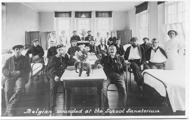 Tonbridge at War 47 Pictures from the THS Pictorial records collection with the catalogue reference. Click < or > to go forward or backword to see each image or click on the image. ©Tonbridge Historical Society, 2023 22.052 Image 28 of 47 (22.052) Belgian wounded in Tonbridge School Sanatorium