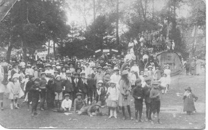Tonbridge at War 47 Pictures from the THS Pictorial records collection with the catalogue reference. Click < or > to go forward or backword to see each image or click on the image. ©Tonbridge Historical Society, 2023 22.075 Image 44 of 47 (22..075) Tank Day in the Castle Grounds, 29th July 1919